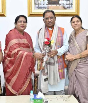 मुख्यमंत्री विष्णुदेव साय से आज राजधानी स्थित उनके निवास कार्यालय में नवनियुक्त निगम-मंडलों के अध्यक्षों ने सौजन्य मुलाकात की। मुख्यमंत्री श्री साय ने सभी अध्यक्षों को नवीन दायित्व की बधाई एवं शुभकामनाएँ देते हुए उनके सफल कार्यकाल की कामना की।