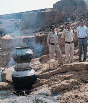 नदी किनारे अज्ञात व्यक्ति द्वारा बनाई गई दो सक्रिय भठ्ठियों को मौके पर ही नष्ट कर दिया गया। साथ ही 120 लीटर अवैध कच्ची मदिरा एवं लगभग 200 किलोग्राम महुआ लाहन बरामद किया गया। जब्त मदिरा का परीक्षण कर महुआ लाहन के नमूने कब्जे में लिए गए। बरामद सामग्री का बाजार मूल्य लगभग 34,000 रूपए है। इस संबंध में अज्ञात व्यक्ति के विरुद्ध आबकारी अधिनियम की धारा 34(1)(च) एवं 34(2) के तहत प्रकरण दर्ज कर विवेचना की जा रही है। आरोपी की पतासाजी के प्रयास जारी हैं।