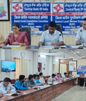 आज जिले में कलेक्टर डी. राहुल वेंकट की अध्यक्षता में डीसीसी/डीएलआरसी की बैठक (दिसंबर 2024 एवं मार्च 2025 तिमाही हेतु) कलेक्ट्रेट कार्यालय के कॉन्फ्रेंस हॉल में आयोजित किया गया। इस अवसर पर जिला पंचायत सीईओ श्रीमती अंकिता सोम, आरबीआई एलडीओ दीपेश तिवारी, नाबार्ड डीडीओ हर्ष गौरव, क्षेत्रीय प्रमुख सीआरजीबी अमित, जिले के सभी जनपद पंचायतों के सीईओ, बैंकों के जिला समन्वयक, तथा सरकारी प्रायोजित योजनाओं से संबद्ध सभी एजेंसियों के प्रतिनिधि उपस्थित रहे। बैठक में सीडी रेशियो, प्राथमिकता क्षेत्र ऋण वितरण, सरकारी प्रायोजित योजनाओं की प्रगति, तथा वार्षिक ऋण योजना (एसीपी) जैसे प्रमुख बिंदुओं पर विस्तारपूर्वक चर्चा की गई। बैठक का संचालन एवं समन्वय एलडीएम संजीव पाटिल द्वारा किया गया।