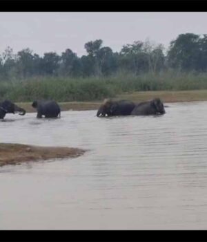 छत्तीसगढ़ के मरवाही वनमंडल के जंगलों में बीते कुछ वर्षों से हाथियों की आवाजाही लगातार बनी हुई है. हाल ही में चार दंतैल हाथियों का एक दल इन जंगलों में देखा गया है, जो इन दिनों सिवनी बीट के कतलगढ़ाई बांध के आसपास विचरण कर रहा है. गर्म मौसम से राहत पाने के लिए यह हाथी दल जंगल में बने तालाब में मस्ती करते हुए नजर आया है. इस दृश्य को ग्रामीणों ने अपने मोबाइल के कैमरे में कैद कर लिया.