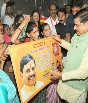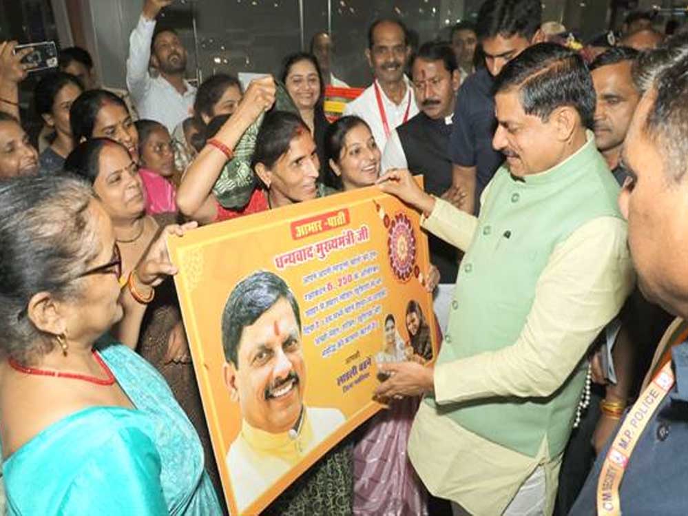 ग्वालियर की लाड़ली बहनाओं ने ग्वालियर विमानतल पर मुख्यमंत्री डॉ. मोहन यादव को धन्यवाद पत्र भेंट करते हुए कहा कि लाड़ली बहना योजना के माध्यम से आपकी बहनों को बहुत संबल मिला है।