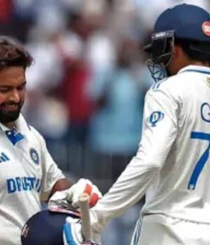 भारत का चौथा विकेट गिर गया है। पंत 65 रन बनाकर आउट हुए। शुभमन गिल 63 रन बनाकर खेल रहे हैं। भारत ने दूसरी पारी में 243 रन बना लिए हैं। जडेजा क्रीज पर आए हैं। पंत के आउट होने के बाद।