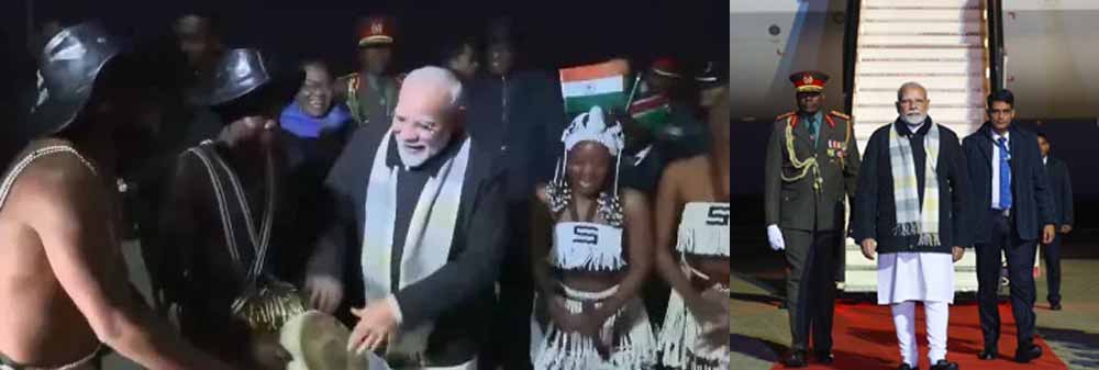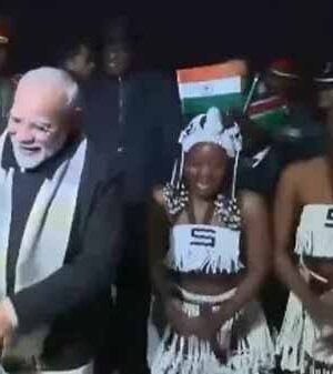 पांच देशों के विदेश यात्रा के अंतिम पड़ाव में पीएम नरेंद्र मोदी अफ्रीकी देश नामीबिया पहुंच गए हैं। प्रधानमंत्री मोदी आज सुबह 11 बजे (भारतीय समयानुसार) दक्षिण अफ्रीकी देश नामीबिया पहुंचे। राजधानी विंडहोक के एयरपोर्ट पर लैंड होने के बाद पीएम मोदी का पारंपरिक नृत्य के साथ स्वागत किया गया। इस दौरान प्रधानमंत्री भी खुद को रोक नहीं पाए और उन्होंने खुद कलाकारों के साथ नामीबियाई पारंपरिक ढोलक भी बजाया। मोदी राष्ट्रपति नंदी-नदैतवा के निमंत्रण पर नामीबिया की यात्रा पर पहुंचे हैं।