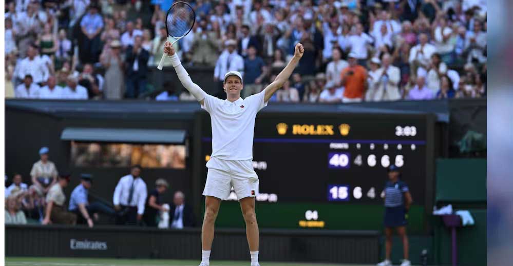 यानिक सिनर विंबलडन टेनिस ग्रैंडस्लैम के पुरुष एकल के फाइनल में कार्लोस अल्काराज को हराकर पहली बार विंबलडन का खिताब अपने नाम किया। सिनर पिछले दो बार के विजेता कार्लोस अल्काराज को 4-6, 6-4, 6-4, 6-4 से हराकर ऑल इंग्लैंड क्लब में पहली बार चैंपियन बने।इस हार के साथ दूसरे वरीय अल्कराज का लगातार 24 मैचों की जीत का सिलसिला खत्म हो गया है। 23 वर्षीय सिनर1968 के बाद से सेंटर कोर्ट पर ट्रॉफी उठाने वाले 23वें खिलाड़ी बन गए हैं। यानिक सिनर विंबलडन एकल खिताब जीतने वाले इटली के पहले खिलाड़ी बन गए हैं।
