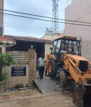 कार्रवाई के लिए मौके पर भारी संख्या में पुलिस बल तैनात किया गया है. निगम की टीम ने दफ्तर से अंदर मौजूद सामान को बाहर निकालना शुरू कर दिया है. प्रशासनिक अमले की मौजूदगी में किसी भी प्रकार की अप्रिय स्थिति से निपटने के लिए पुलिस की स्पेशल टीम ‘प्रहरी’ भी मौके पर मौजूद है.