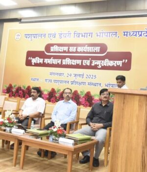 पशुपालन एवं डेयरी राज्य मंत्री (स्वतंत्र प्रभार) लखन पटेल ने कहा है कि देश की आर्थिक उन्नति में दुग्ध उत्पादन का महत्वपूर्ण स्थान है। गौ एवं भैंस वंशीय पशुओं की नस्ल सुधार कर दुग्ध उत्पादन में काफी बढ़ोतरी की जा सकती है। कृत्रिम गर्भाधान के माध्यम से नस्ल सुधार को एक अभियान के रूप में चलाया जाए। मुख्यमंत्री डॉ. मोहन यादव के नेतृत्व में दुग्ध उत्पादन को 9% से बढाकर 20% तक किए जाने का लक्ष्य निर्धारित किया गया है। हमें इसे पूरा करना है और गुणवत्ता पूर्ण कृत्रिम गर्भाधान से नस्ल सुधार और ब्रीडिंग कवरेज बढ़ाकर दुग्ध उत्पादन में वृद्धि की जा सकेगी। केंद्र द्वारा चलाए जा रहे राष्ट्रीय कृत्रिम गर्भाधान कार्यक्रम को भी प्रदेश में प्रभावी ढंग से संचालित किया जाए।