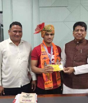 गोल्ड मेडलिस्ट पृथ्वीराजसिंह ठाकुर का सम्मान, विधायक ने दी 5100 रुपये की निधि