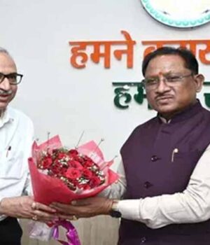 मुख्यमंत्री विष्णु देव साय से आज राजधानी रायपुर स्थित मुख्यमंत्री निवास कार्यालय में भिलाई स्टील प्लांट के नवनियुक्त निदेशक चित्तरंजन महापात्र ने सौजन्य मुलाकात की। इस अवसर पर महापात्र ने मुख्यमंत्री को पुष्पगुच्छ, शॉल और श्रीफल भेंट कर सम्मानित किया। सीएम साय ने महापात्र को उनकी नवीन पदस्थापना पर बधाई एवं शुभकामनाएं दी।