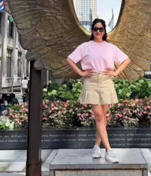 आउटफिट इतना परफेक्ट चुनने के बाद शुभांगी ने अपने लुक में एक भी कमी नहीं छोड़ी। तभी उन्होंने स्कर्ट और टी शर्ट के साथ आंखों पर काला चश्मा लगाकर पोज दिए। उनके चश्मा का स्कवायर फ्रेम है। जो कि हाफ क्लच बालों वाले हेयरस्टाइल के साथ चेहरे की खूबसूरती में चार- चांद लगाता दिख रहा है। और, लुक को बेस्ट बनाने के बाद शुभांगी विदेशी जमीन पर एक के बाद एक पोज देती नजर आईं।