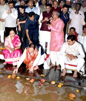 केंद्रीय मंत्री नड्डा और मुख्यमंत्री डॉ. यादव माँ नर्मदा की महाआरती में हुए शामिल