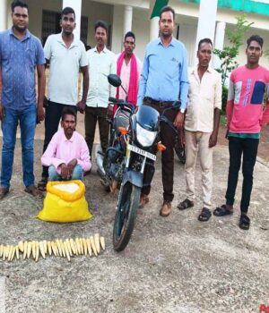 प्राप्त जानकारी के अनुसार बलौदाबाजार-भाटापारा जिले के वन परिक्षेत्र अधिकारी श्री रूपेन्द्र कुमार साहू के नेतृत्व में महराजी सर्कल के वन कर्मचारियों एवं सुरक्षा श्रमिकों द्वारा की गई नियमित गश्त के दौरान प्रवीण कुमार पटेल पिता भनेश राम पटेल, उम्र 37 वर्ष, निवासी ग्राम गिरौदपुरी, को मोटरसाइकिल (होंडा साइन, क्रमांक CG22 AF 8094) में बांस करील एवं बांस पिका का अवैध रूप से परिवहन करते हुए रंगे हाथ पकड़ा गया। मौके पर ही वाहन एवं बांस करील एवं पिका को जप्त कर पी.ओ. आर. दर्ज की गई। बरामद नासवान बांस करील एवं पिका को नियमानुसार गड्ढा खोदकर नष्ट किया गया। साथ ही संबंधित के विरूद्ध विभागीय कार्यवाही की जा रही है।