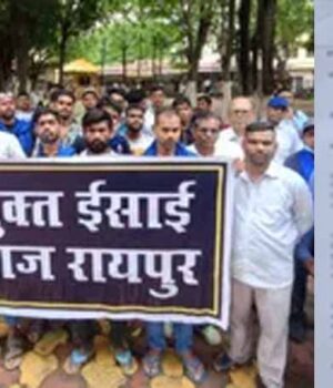राजधानी रायपुर में आज बड़ी संख्या में संयुक्त ईसाई समाज के लोग ईसाई धर्मानुसार घरेलू नियमित प्रार्थना सभा संचालन करने के पक्ष में कार्यवाही करने की मांग को लेकर कलेक्टोरेट पहुंचे। इस दौरान उन्होंने ईसाई समाज पर प्रार्थना सभा की आड़ में धर्मांतरण और जबरन बुलाए जाने के आरोपों को पूरी तरह से गलत बताया। इस दौरान उन्होंने कलेक्टर से मांग की कि उन्हें प्रार्थना सभा में सुरक्षा दी जाए। मांग पूरी नहीं होने पर आगे अर्धनग्न प्रदर्शन, रैली और सभा जैसे बड़े प्रदर्शन के लिए उतारू होंगे।