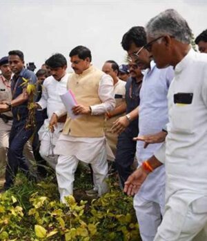 प्रदेश सरकार किसानों के साथ है और हम किसानों को किसी तरह का नुकसान नहीं होने देंगे। मुख्यमंत्री डॉ. मोहन यादव ने गुरूवार को शाजापुर जिले की पोलायकलां तहसील के ग्राम खड़ी में विभिन्न कारणों से खराब हुई सोयाबीन की फसल के अवलोकन के बाद किसानों को यह भरोसा दिलाया। मुख्यमंत्री डॉ. यादव ने शाजापुर कलेक्टर सहित प्रदेश के सभी कलेक्टर्स को खराब हुई सोयाबीन की फसल का सर्वे कराने के निर्देश दिये। किसान कल्याण एवं कृषि विकास मंत्री श्री एदल सिंह कंषाना, विधायक श्री घनश्याम चन्द्रवंशी, श्री अरूण भीमावद, जिला पंचायत अध्यक्ष श्री हेमराज सिंह सिसोदिया एवं डॉ. रवि पाण्डेय भी इस अवसर पर मौजूद थे।