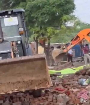 पेटापुर में बुलडोजर ऐक्शन के विरोध में बड़ी संख्या में लोग एकत्रित हो गए। भारी सुरक्षा के बावजूद लोग जोरदार विरोध प्रदर्शन करने लगे। माहौल तनावपूर्ण हो गया। इस बीच अफरा-तफरी में एक बुलडोजर भी पलट गया। गनीमत है कि इसकी जद में कोई नहीं आया। पुलिसकर्मियों ने किसी तरह लोगों को काबू किया।