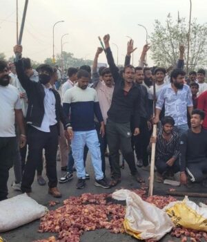 गोमांस को सड़क पर रख कर जाम किया रास्ता
