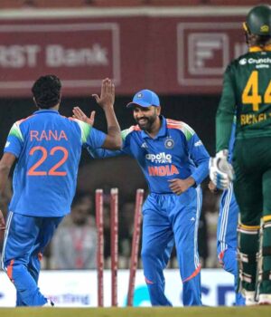 350 रनों के लक्ष्य का पीछा करने उतरी दक्षिण अफ्रीका की शुरुआत बेहद खराब रही। टीम ने दूसरे ओवर में ही दो विकेट गंवा दिए। रिकल्टन और डिकॉक खाता नहीं खोल सके। हर्षित ने दोनों बल्लेबाजों को पवेलियन का रास्ता दिखाया। अर्शदीप सिंह ने एडन मार्करम को आउट किया। एडन सात रन ही बना सके।