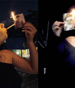 खामेनेई की तस्वीर पर सिगरेट जलाती महिलाएं