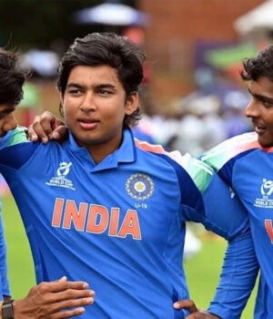 भारत को पहला झटका एरॉन जॉर्ज के रूप में लगा है। उन्हें मजाई ने पांचवे ओवर की पहली गेंद पर जॉर्ज को आउट किया। जॉर्ज ने 16 गेंदों में दो चौकों और एक छक्के की मदद से 23 रनों की पारी खलेी। उन्होंने वैभव सूर्यवंशी (19)* के साथ 41 रनों की साझेदारी की। सूर्यवंशी का साथ देने कप्तान आयुष म्हात्रे आए हैं।