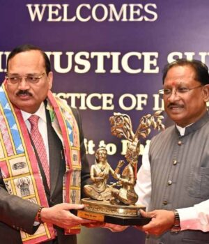 मुख्यमंत्री साय ने इस अवसर पर भारत के सर्वोच्च न्यायालय के माननीय न्यायाधीश न्यायमूर्ति पी. नरसिम्हा एवं न्यायमूर्ति प्रशांत कुमार मिश्रा तथा छत्तीसगढ़ उच्च न्यायालय के माननीय मुख्य न्यायाधीश न्यायमूर्ति रमेश सिन्हा का स्वागत एवं अभिनंदन किया।