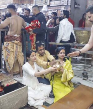 विश्व प्रसिद्ध ज्योतिर्लिंग महाकालेश्वर मंदिर में रोजाना सेलिब्रिटी अपनी मनोकामना लिए आते हैं. मंगलवार को अलसुबह होने वाली भस्म आरती में फिल्म अभिनेत्री मेधा शंकर शामिल हुईं. मेधा शंकर उभरती अभिनेत्री हैं. वह 12वीं फेल फिल्म में लीड रोल निभा चुकी हैं. मेधा ने भस्म आरती के दर्शन किए और काफी देर तक भगवान शिव की आराधना की.