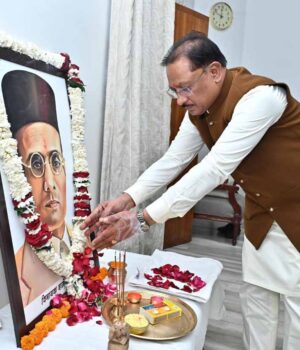 मुख्यमंत्री साय ने कहा कि मातृभूमि की स्वतंत्रता के लिए सावरकर जी का त्याग, संघर्ष और अदम्य साहस भारतीय इतिहास में स्वर्ण अक्षरों में अंकित है। कालापानी की अमानवीय यातनाओं के बावजूद उनका राष्ट्र के प्रति समर्पण अडिग रहा। उनका संपूर्ण जीवन देशसेवा, आत्मबल और राष्ट्र गौरव का प्रेरणास्रोत है। मुख्यमंत्री साय ने कहा कि वीर सावरकर के विचार आज भी युवाओं को राष्ट्र निर्माण के लिए प्रेरित करते हैं। हमें उनके आदर्शों को आत्मसात करते हुए एक सशक्त, समृद्ध और आत्मनिर्भर भारत के निर्माण के लिए निरंतर प्रयासरत रहना चाहिए।