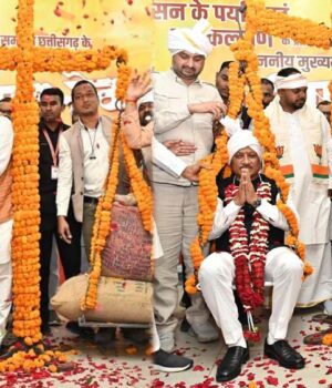 मुख्यमंत्री को धान से तौलकर प्रदेश के अन्नदाताओं ने जताया आभार