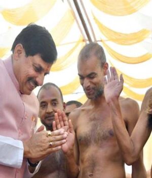 मुख्यमंत्री डॉ. मोहन यादव ने महावीर जयंती पर श्रमण मुनि 108 संभव सागर जी महाराज का आशीर्वाद प्राप्त किया। मुख्यमंत्री डॉ. यादव ने भोपाल के दिगंबर एवं श्वेतांबर जैन समाज द्वारा संयुक्त तत्वावधान में निकाली जा रही भगवान महावीर स्वामी की शोभायात्रा का इतवारा पहुंचकर स्वागत कर यात्रा में शामिल हुए। मुख्यमंत्री डॉ. यादव ने मुनि 108 संभव सागर जी महाराज सहित अन्य मुनिगण को श्रीफल भेंट कर उनका अभिवादन किया। इस अवसर पर सूक्ष्म, लघु और मध्यम उद्यम मंत्री चैतन्य कुमार काश्यप, प्रदेश महामंत्री राहुल कोठारी, दिगम्बर पंचायत कमेटी के अध्यक्ष पंकज जैन, सुपारी और श्वेताम्बर समाज के अध्यक्ष राजेश तांतेड़ उपस्थित थे।