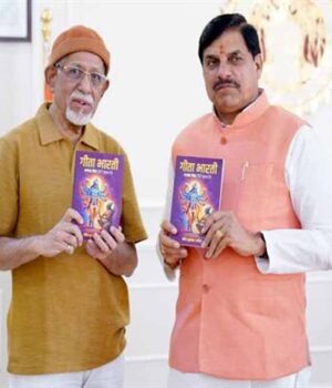 मुख्यमंत्री डॉ. मोहन यादव ने समत्व भवन में पंडित मुस्तफा आरिफ उज्जैन की पुस्तक 'गीता भारती' का विमोचन किया। इस पुस्तक में भगवद गीता के श्लोक 'हिन्दी मुक्तक' के रूप में लिखकर संकलित किए गए हैं। मुख्यमंत्री डॉ. यादव ने लेखक को इस काव्य सृजन के लिए बधाई दी।