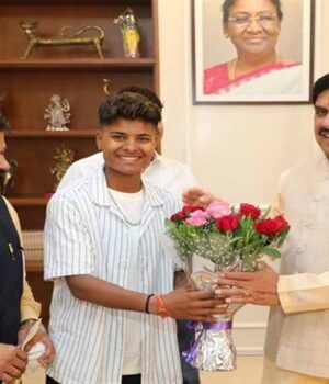 मुख्यमंत्री डॉ. मोहन यादव से गुरुवार को मुख्यमंत्री निवास में भारतीय महिला क्रिकेट टीम की सदस्य क्रांति गौड़ ने सौजन्य भेंट की। इस अवसर पर खेल संगठनों के पदाधिकारी भी उपस्थित थे। मुख्यमंत्री डॉ. यादव ने क्रिकेटर क्रांति गौड़ को आगे भी इसी तरह राष्ट्रीय और अंतर्राष्ट्रीय स्तर पर प्रदेश का नाम रोशन करने के लिए आशीर्वाद दिया। इस अवसर पर मुख्यमंत्री डॉ. यादव को कु. गौड़ ने क्रिकेट बाल भेंट की।