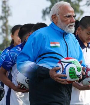 प्रधानमंत्री नरेंद्र मोदी फुटबॉल के मैदान में भी उतरे और युवाओं के साथ फुटबॉल भी खेला. फुटबॉल मैदान की तस्वीरें शेयर करते हुए प्रधानमंत्री मोदी ने सोशल मीडिया प्लेटफॉर्म एक्स पर लिखा कि सिक्किम में अपने युवा मित्रों के साथ गंगटोक की सुहानी सुबह में फुटबॉल खेलने जैसा कुछ नहीं. प्रधानमंत्री नरेंद्र मोदी इन तस्वीरों में युवाओं के साथ फुटबॉल खेलते नजर आ रहे हैं।