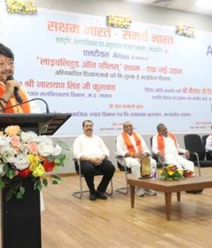 मंत्री नारायण सिंह कुशवाह ने कहा कि राष्ट्र के उत्थान एवं भारत को पुनः विश्वगुरु बनाने के संकल्प को लेकर सभी विभाग एवं समाज के लोग मिलकर कार्य कर रहे हैं। उन्होंने कहा कि प्रधानमंत्री नरेन्द्र मोदी के विकसित एवं समर्थ भारत के संकल्प को साकार करने की दिशा में वर्ष 2047 तक विभिन्न संस्थाएं और सामाजिक संगठन निरंतर कार्य कर रहे हैं। उन्होंने “सक्षम” संस्था के प्रयासों की सराहना करते हुए संस्था को बधाई दी। मंत्री कुशवाह ने दिव्यांग हितग्राहियों को वितरित